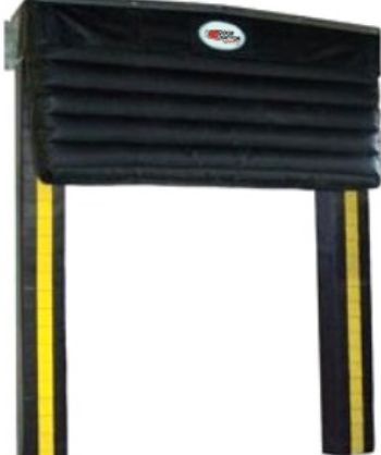 Generally designed to suit 8' wide x 10' high openings. This unit is designed to suit a variety of trailer heights. An inflatable header airbag assembly is inflated after a trailer has docked and an internal retraction spring allows the top bag to be fully retracted when not in use to prevent damage from incoming trailers. Two foam side pads create a tight seal on the side of the trailers.